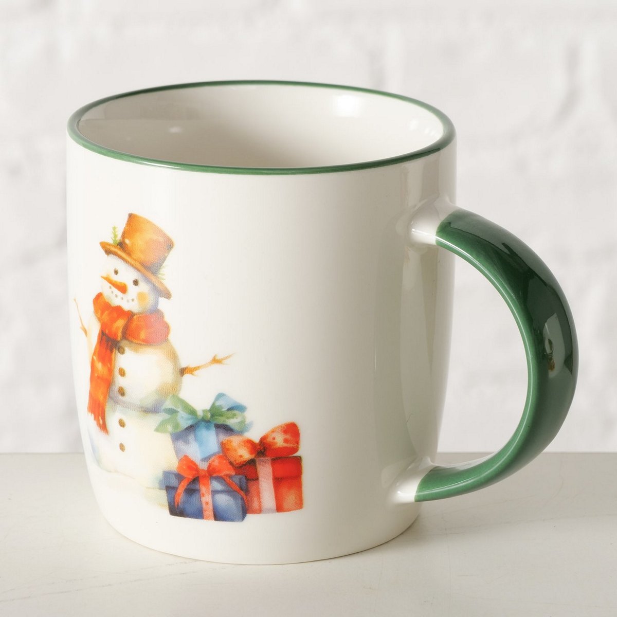 Mug Navis, 340 ml, Dishwasher proof, Coloured edge, Multi-coloured, Motif, Brown, Dark green, White New Bone colour-mix