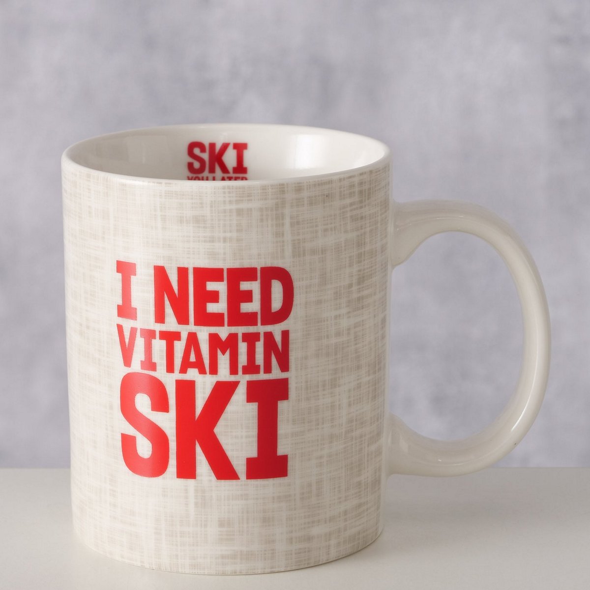 Mug Skiing, 340 ml, Dishwasher proof, Multi-coloured, Beige, Red New Bone colour-mix