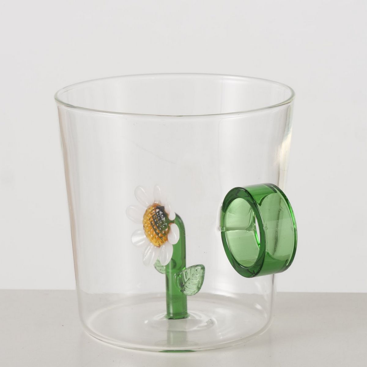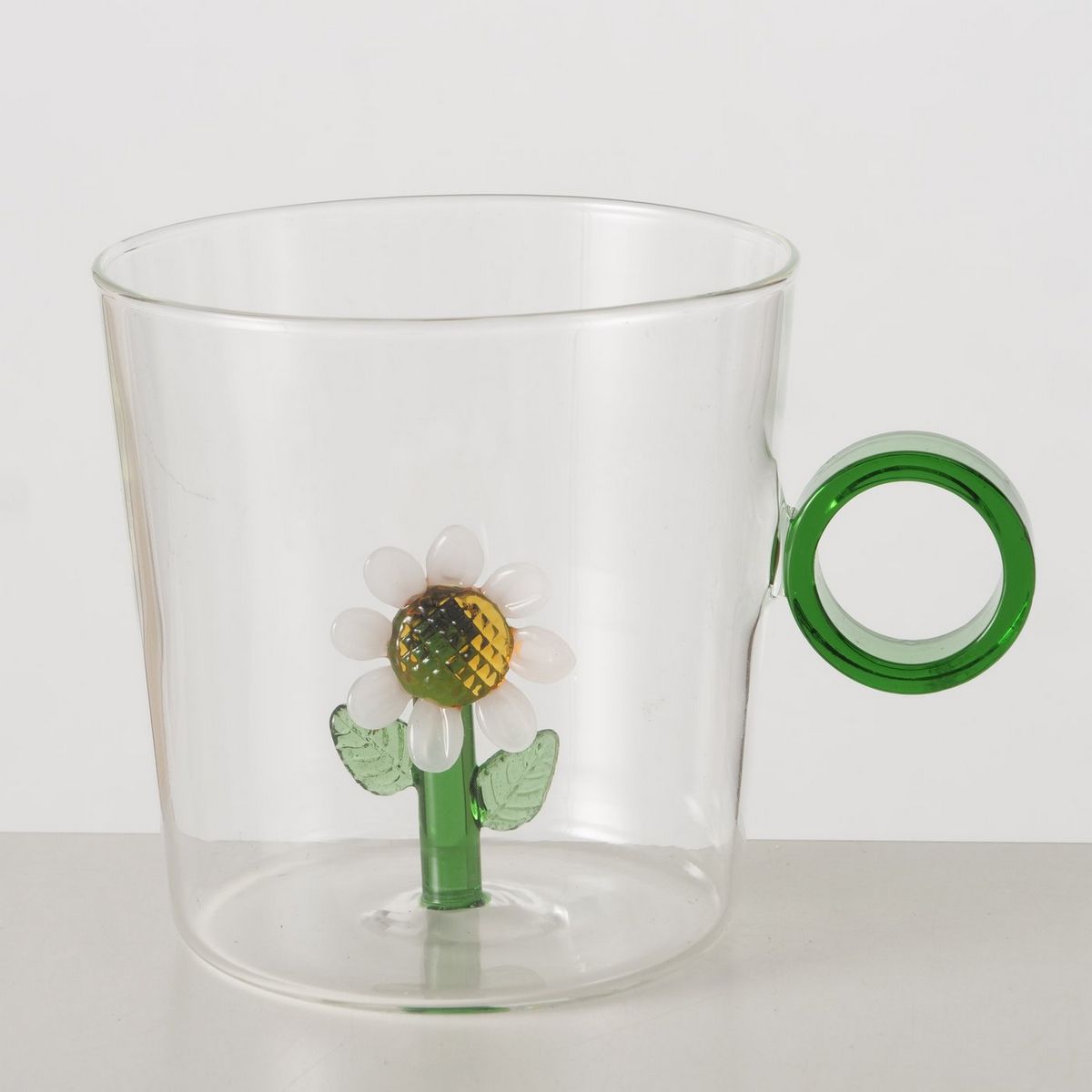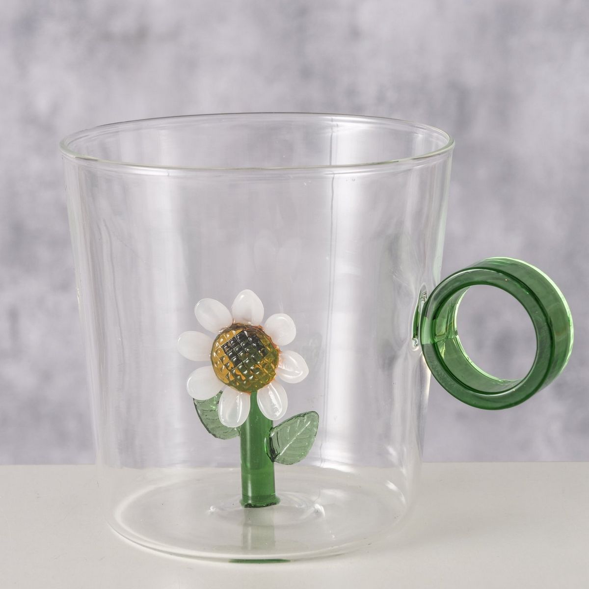 Mug Sunflower, 370 ml, Dishwasher proof, Floral, Green, Transparent