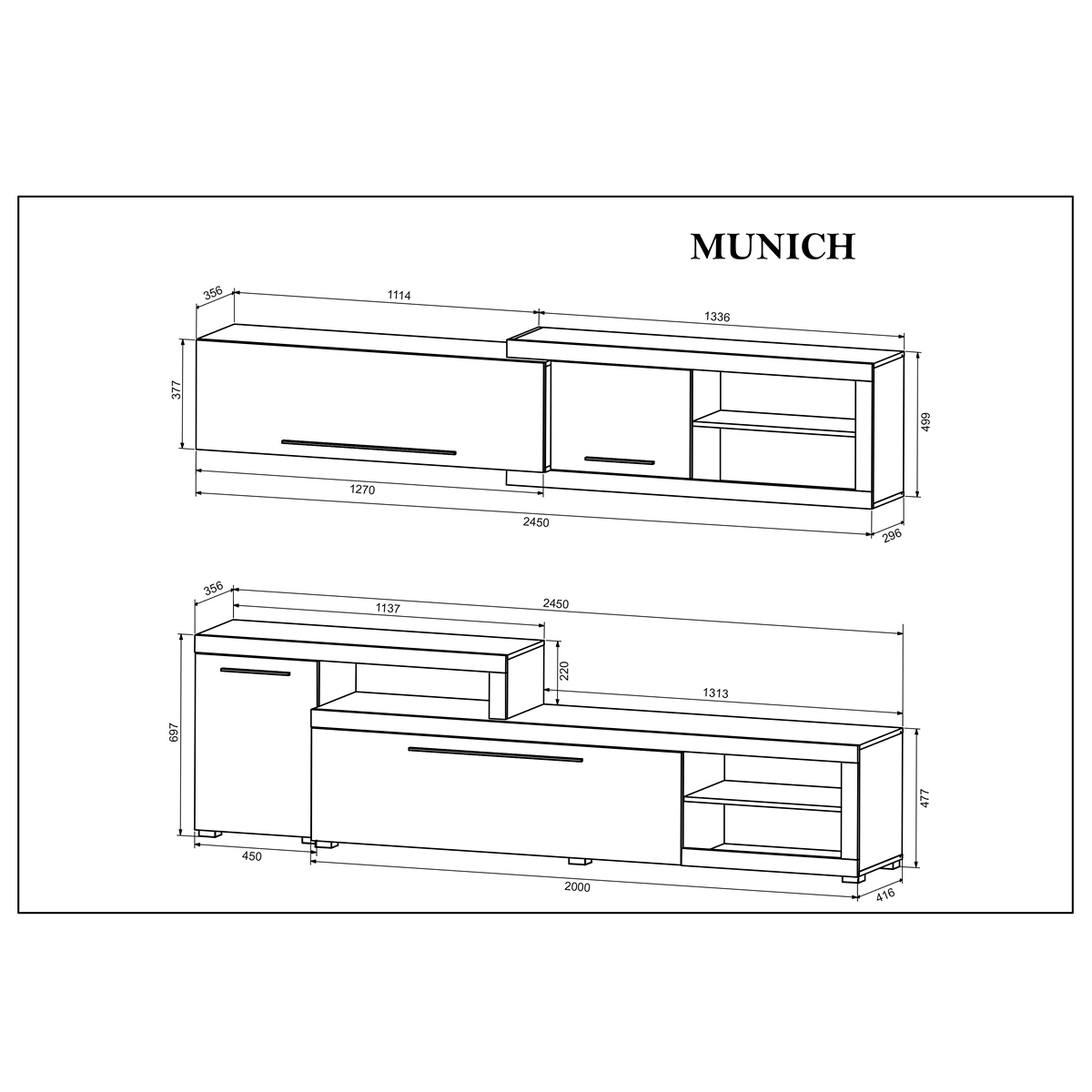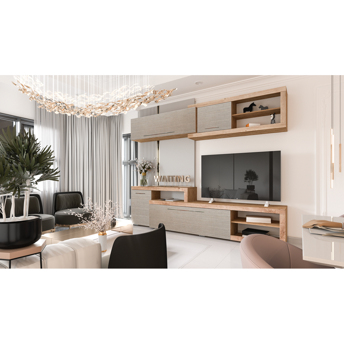 MUNICH SET/3 GOTLAND BROWN/GREEIGE TESSEA GRAY (TV UNIT, WALL CABINET, WALL CABINET) 245/190/41.50cm melamine (assembling instructions included)