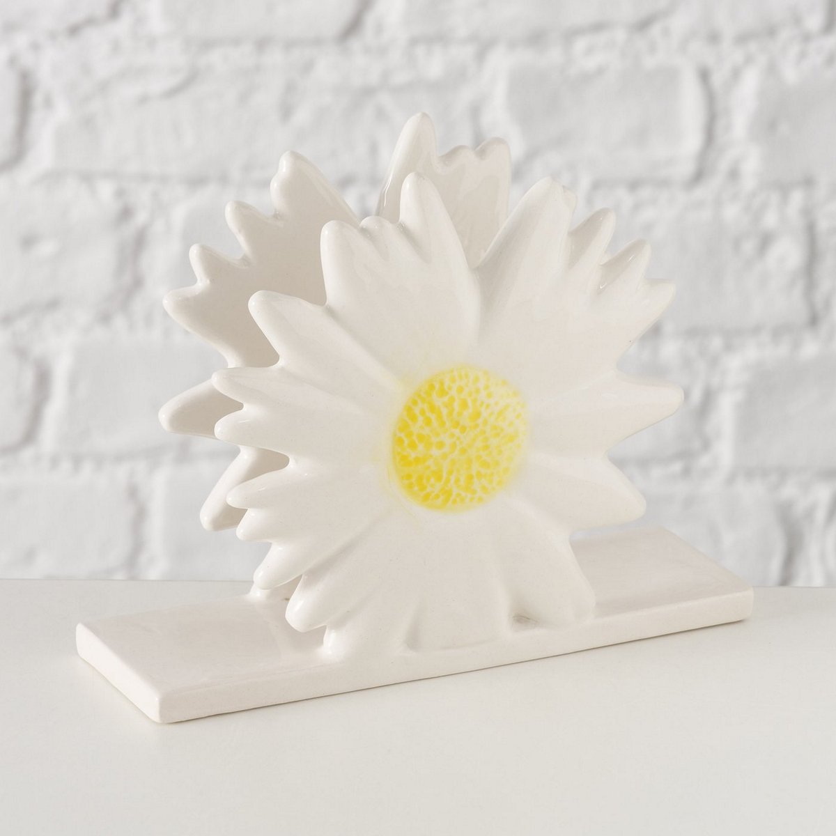 Napkin holder Daisy, Earthenware, Shiny, Single-colour, White stoneware white