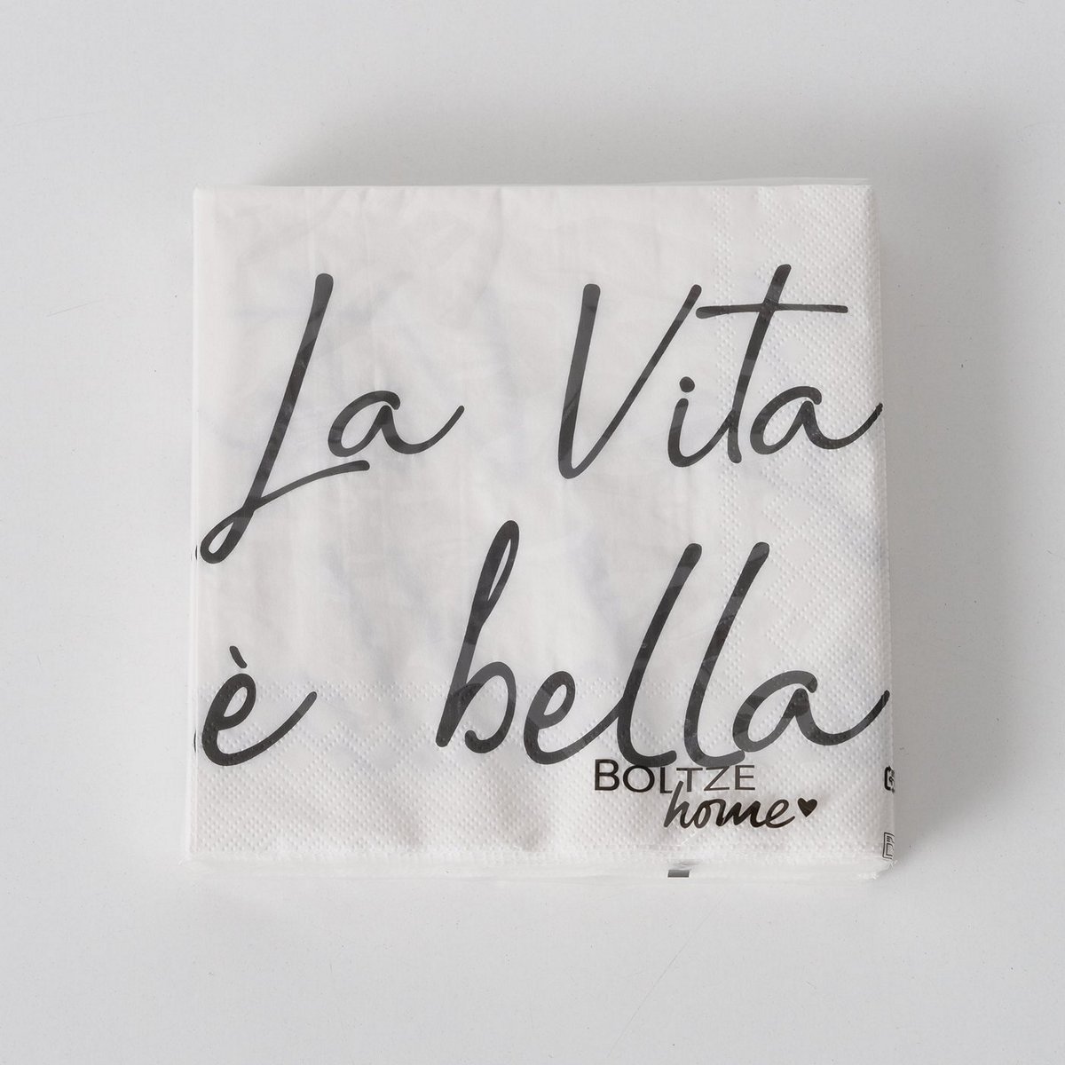 Napkins Dolce Vita, 20 p., 2 ass., Multi-coloured, Saying/Text, Geometrical, Black, White, Paper paper colour-mix