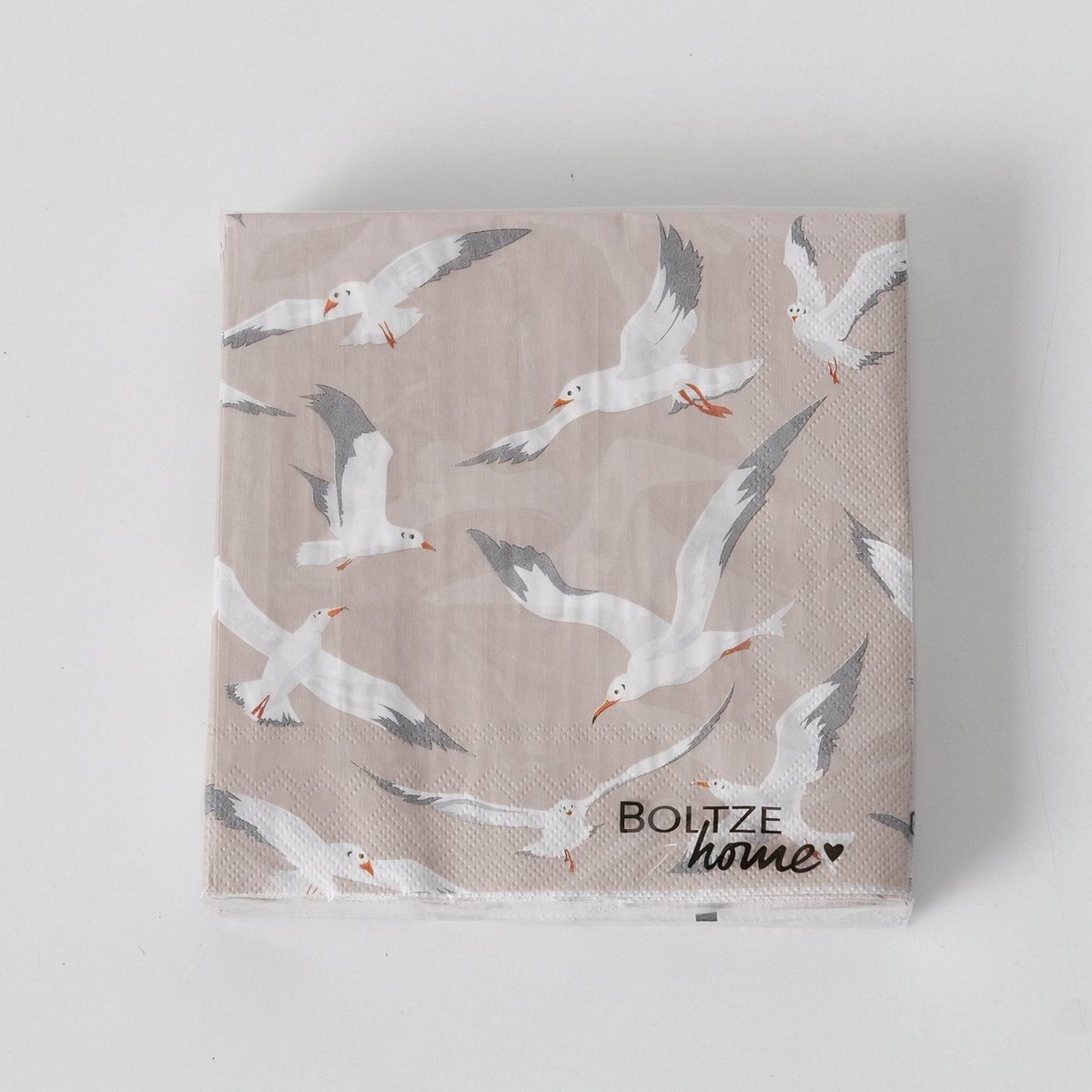 Napkins Finne, 20 p., 3 ass., Multi-coloured, Motif, Seagull, Geometrical, Beige, Light blue, White, Paper paper colour-