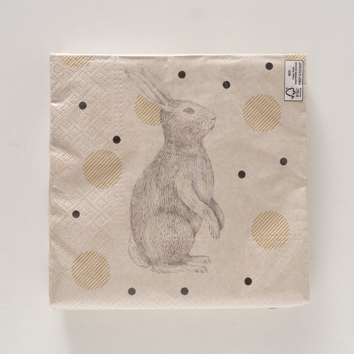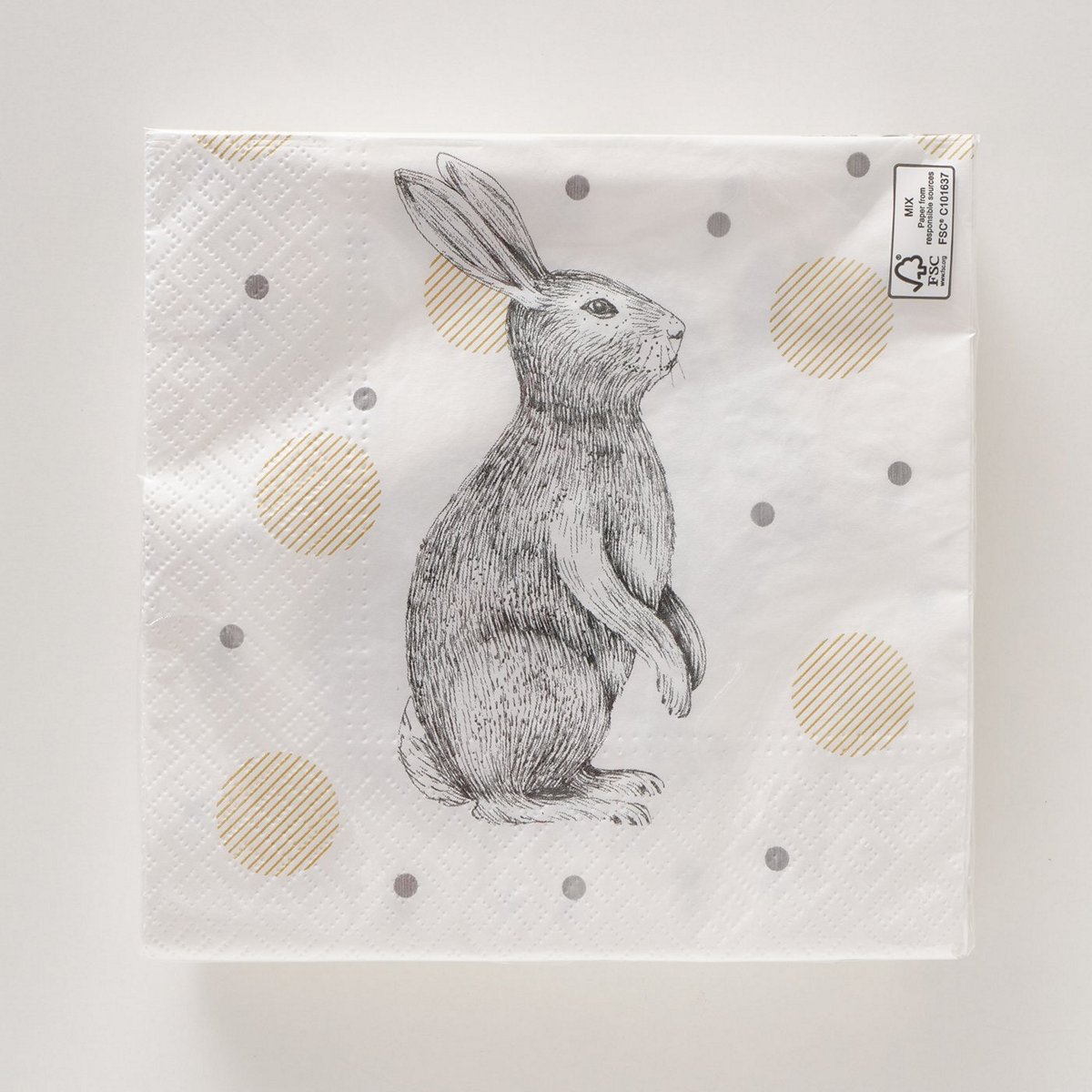 Napkins Goldy , 20 p., Counter display, Multi-coloured, Motif, Rabbit, Geometrical, Gold, White paper colour-mix