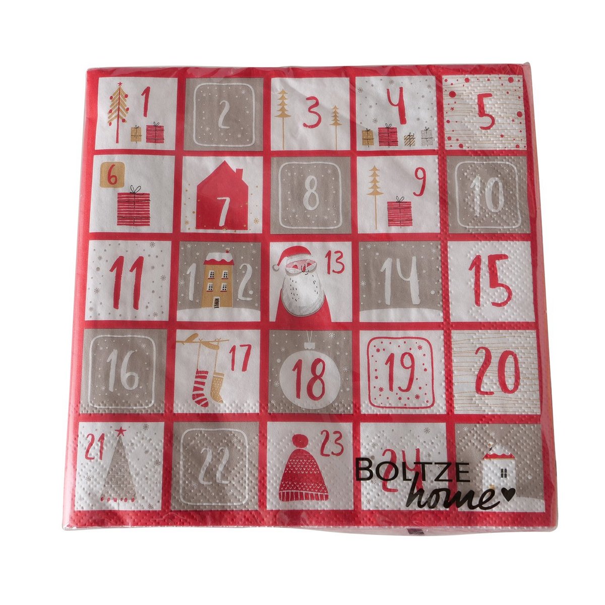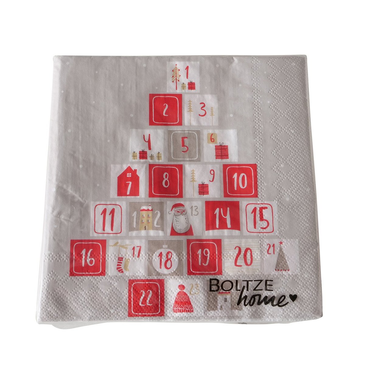 Napkins Halmstad, 20 p., 2 ass., Multi-coloured, Motif, Santa, Christmas tree, Snowflake, Gift, Grey, Red, White, Paper
