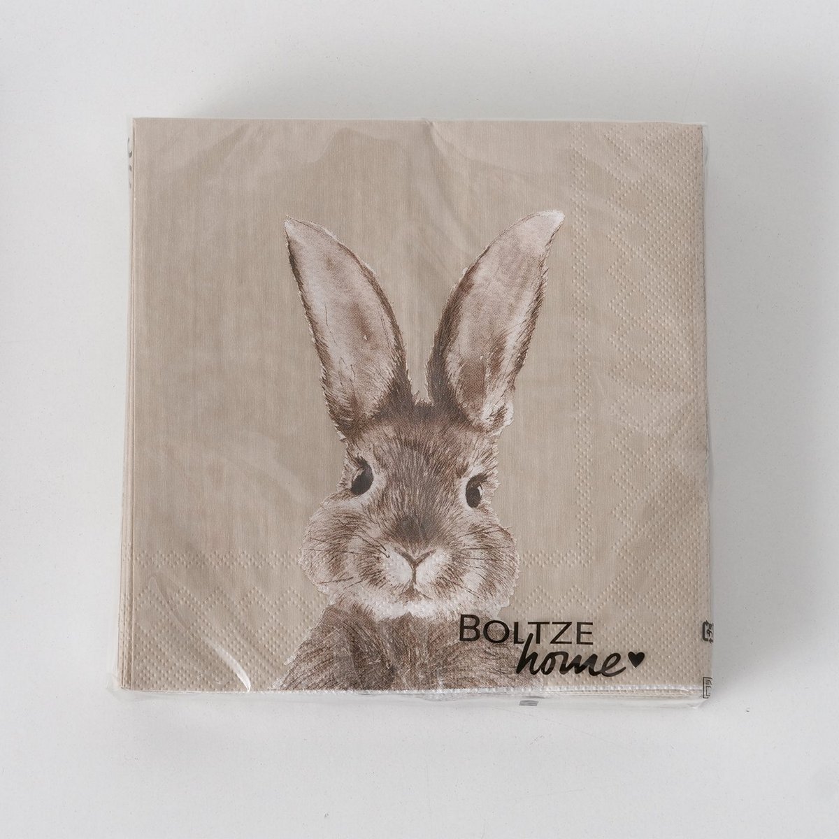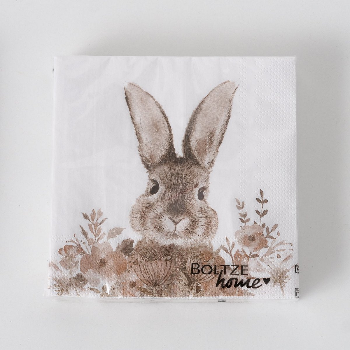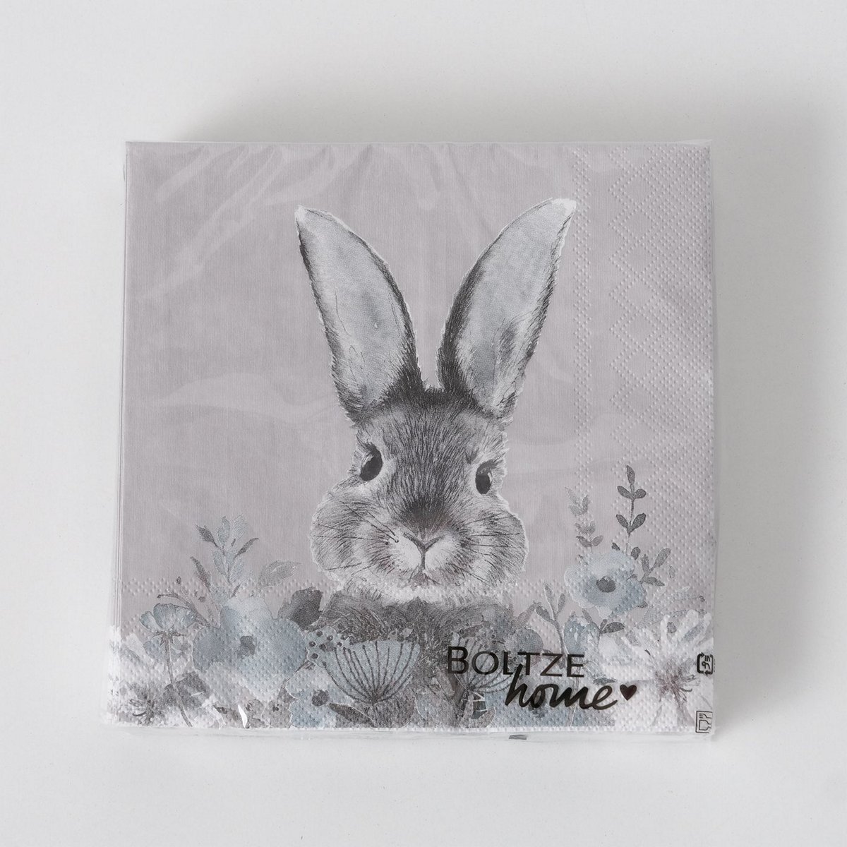 Napkins Krόmel, 20 p., 4 ass., Motif, Multi-coloured, Rabbit, Floral, Flower, Dark grey, Grey, Light brown, White mixed