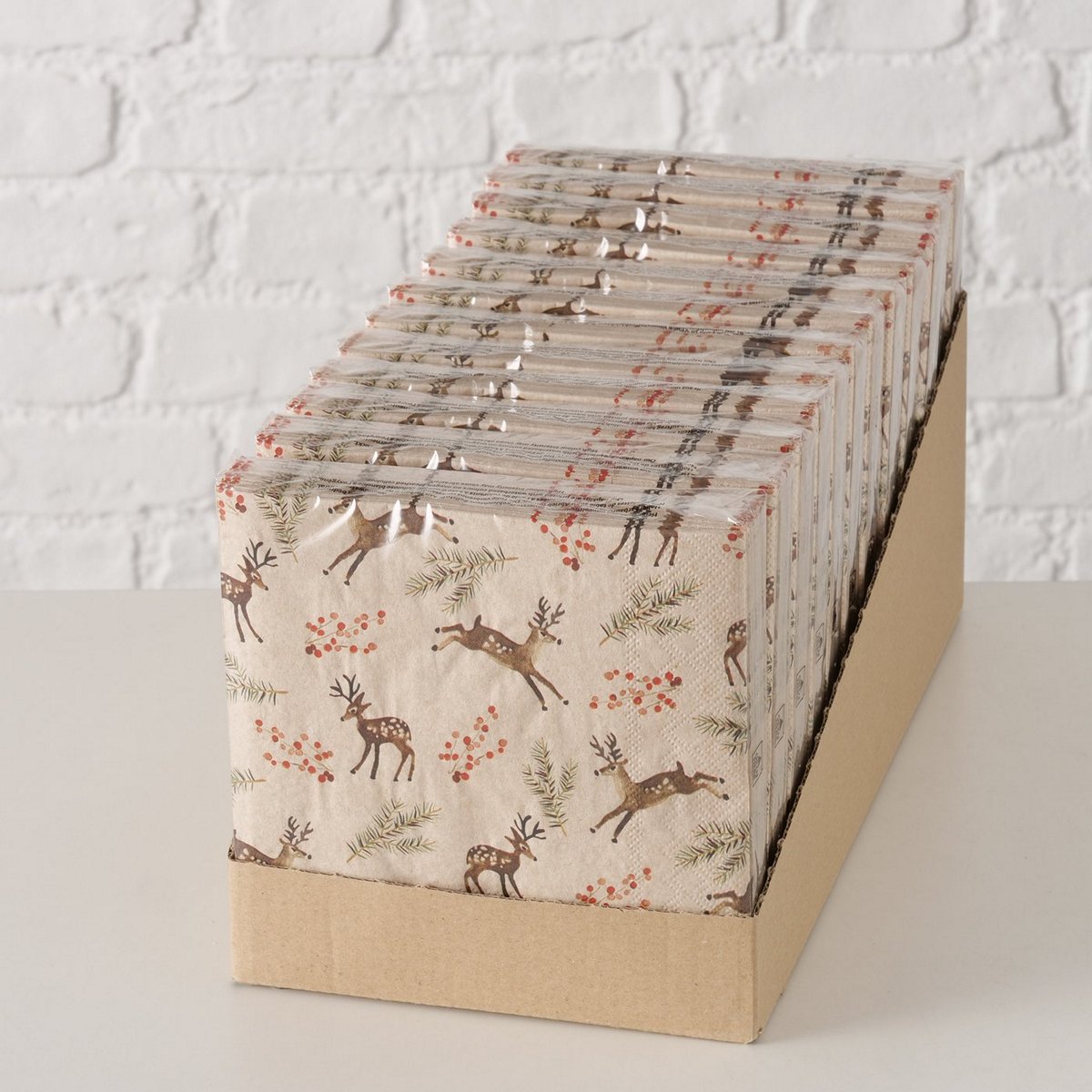 Napkins Roxy, 20 p., Recycled paper, Multi-coloured, Motif, Square, Deer, Christmas tree paper recycled colour-mix