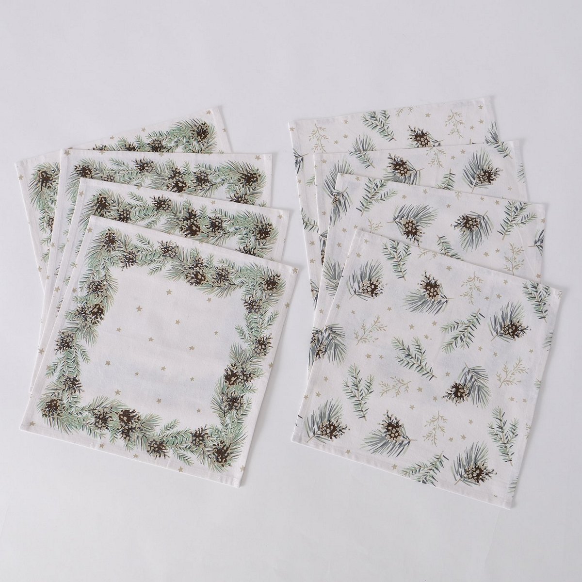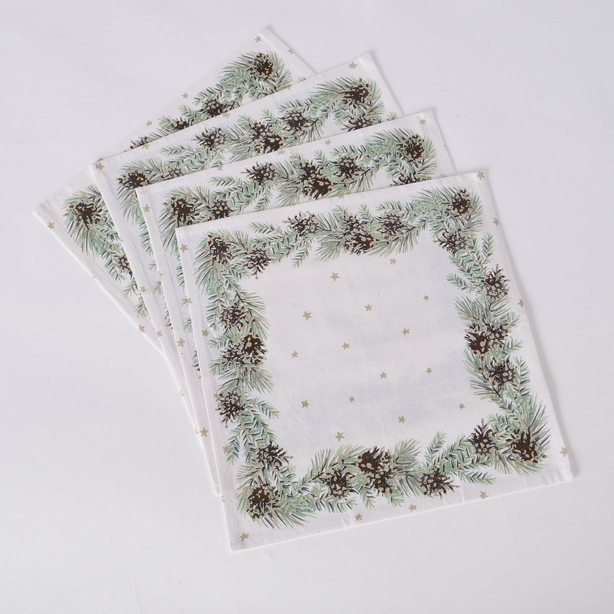 Napkins Tilburg, 4 p., 2 ass., Multi-coloured, Motif, No, Green, White, Cotton cotton colour-mix