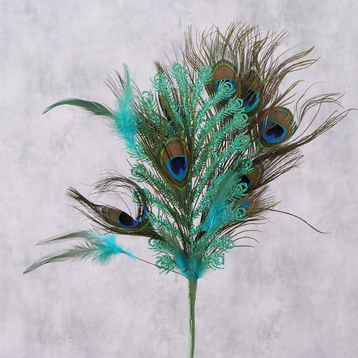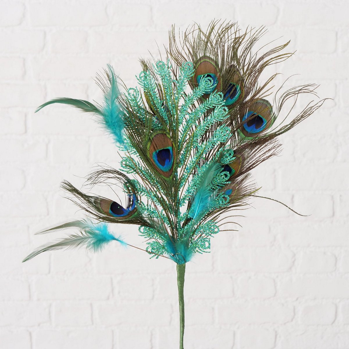 Natural decoration Peacock, Iron, Polyethylene, Feathers, L 60,00 cm, W 24,00 cm, Glitter mixed materials colour-mix