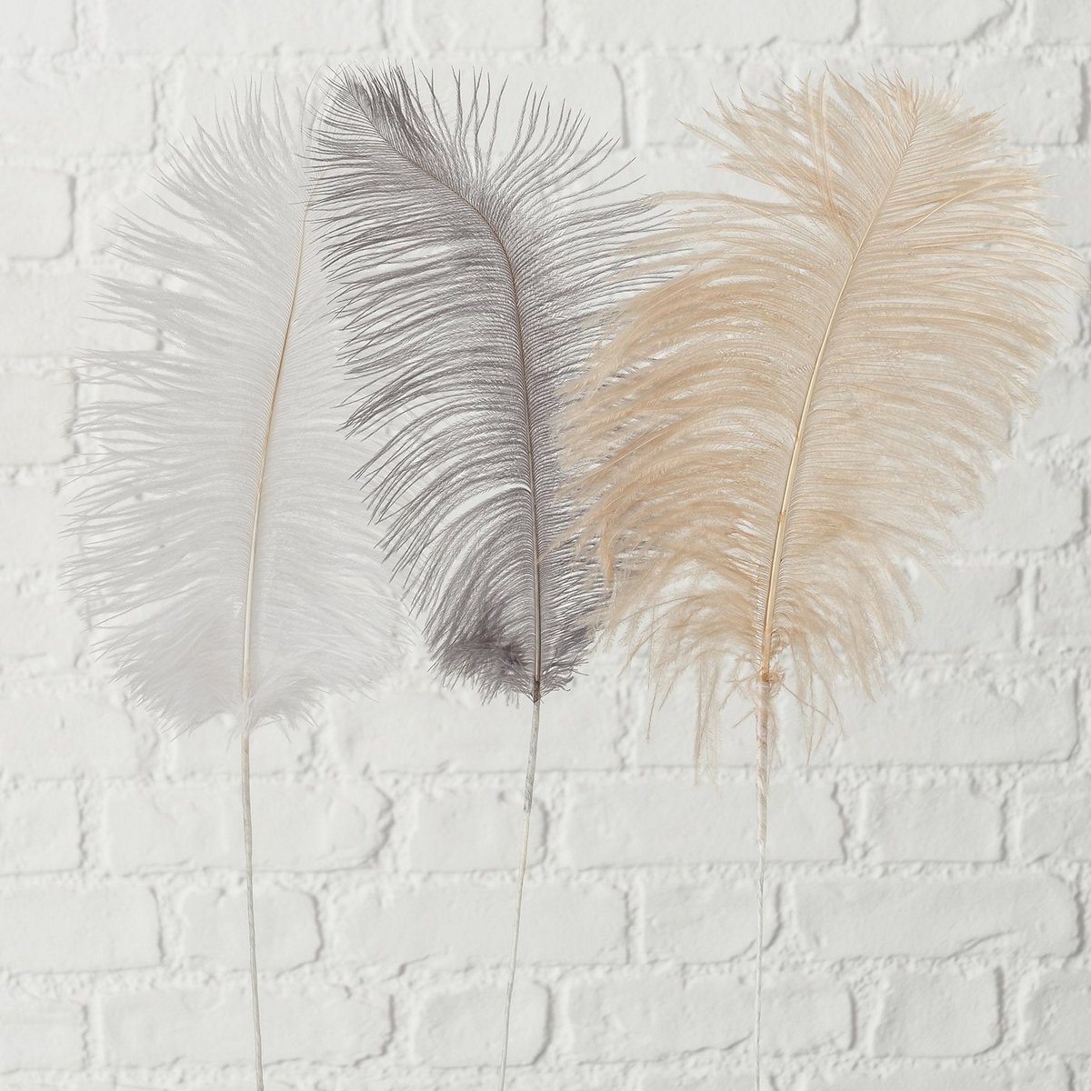 Natural decoration Plumia, 3 ass., Iron, Feathers, L 60,00 cm, W 15,00 cm, No mixed materials colour-mix