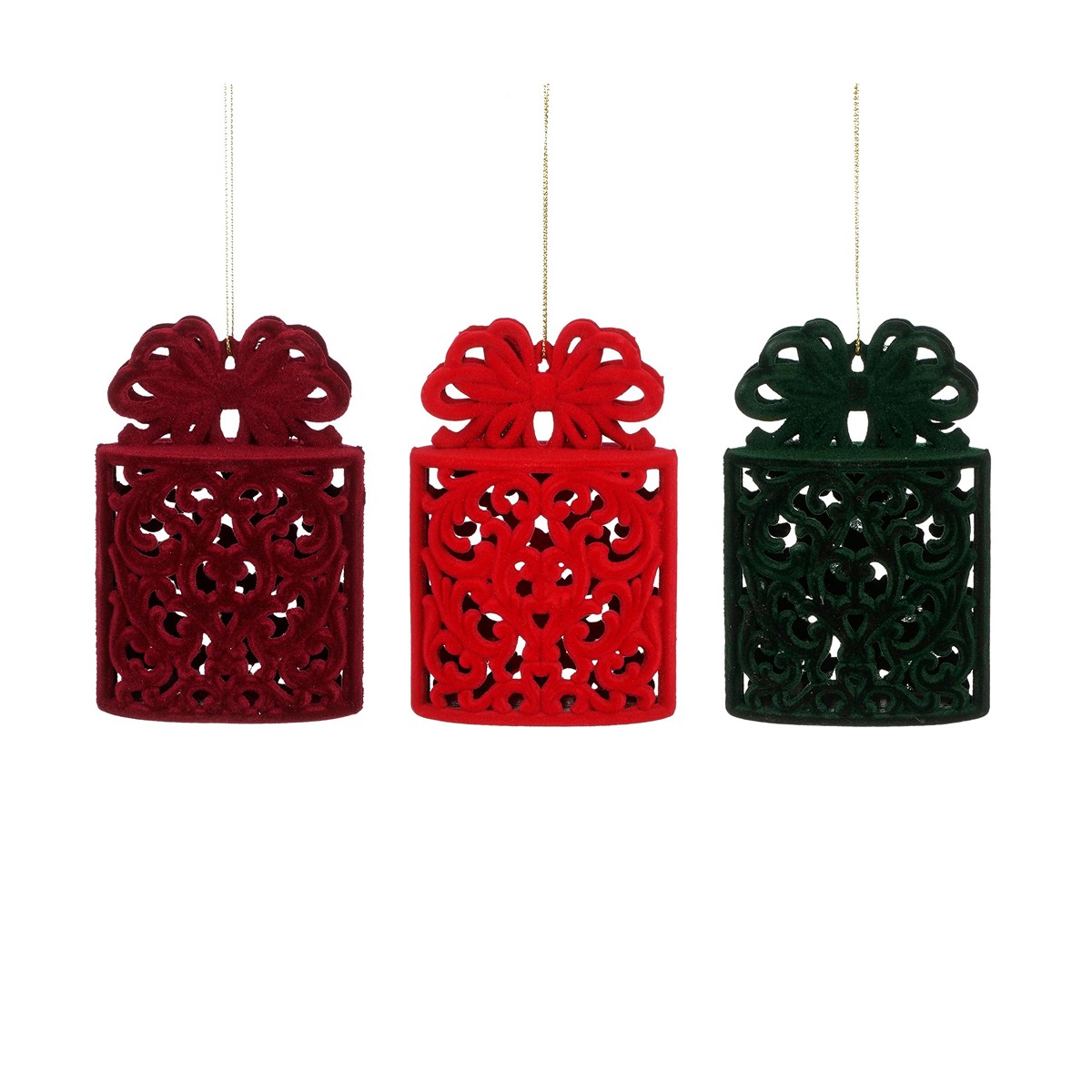 Ornament present red bordeaux d. green 3 assorted – l8xw12xh3,5xcm