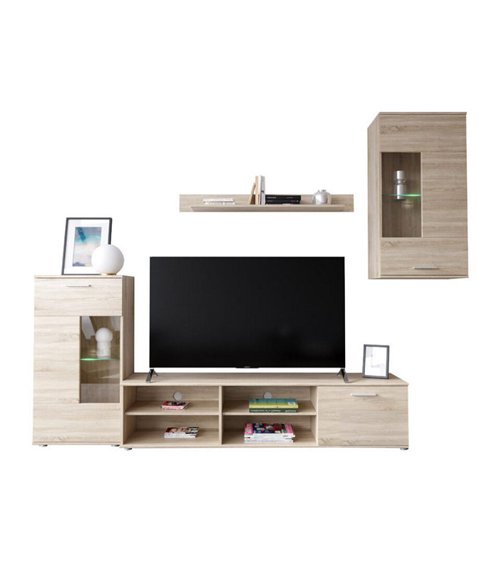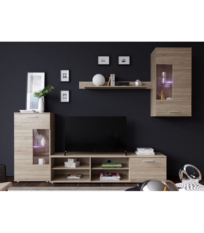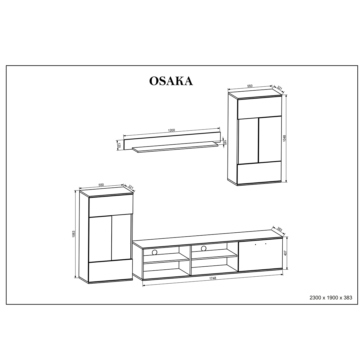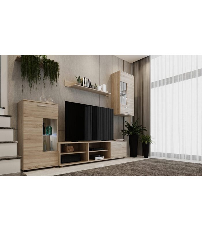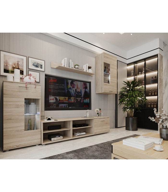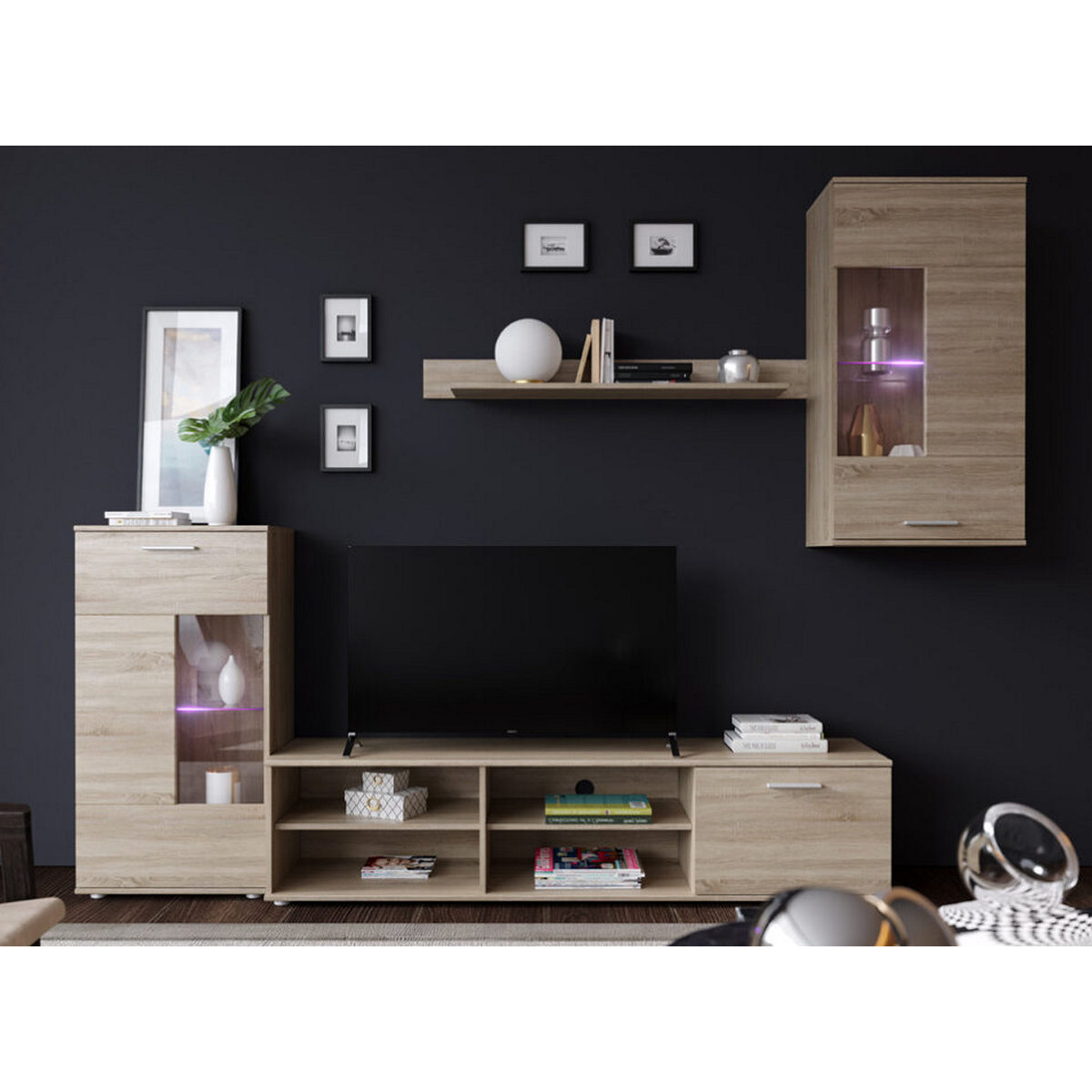 OSAKA SET/4 oak sonoma +lighting (TV CABINET, CABINET, SHELF, WALL CABINET) 210/190/38,50cm melamine (assembling instructions included)
