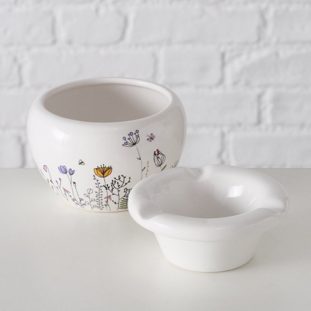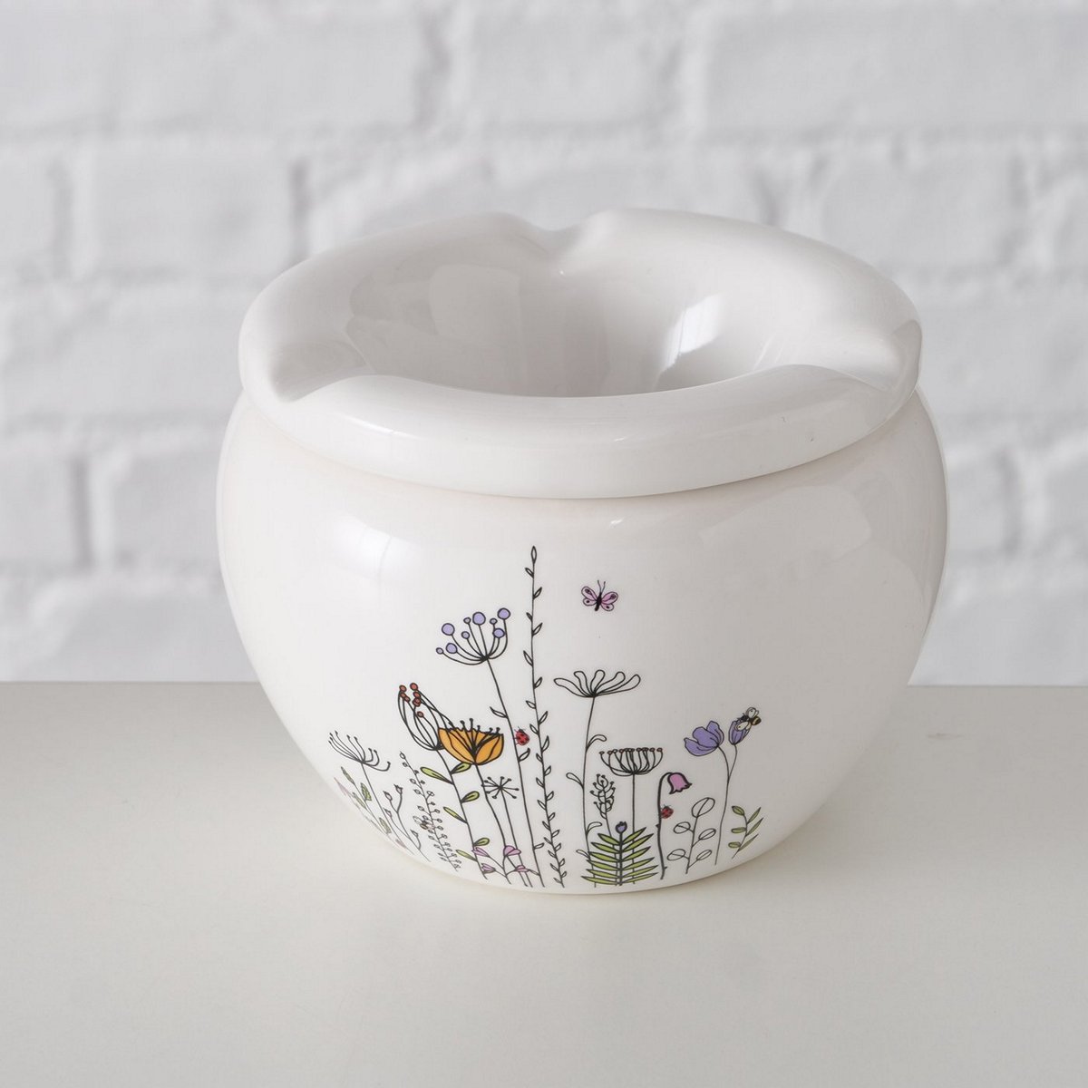 Outdoor ashtray Kamilla, 2 ass., H 8,00 cm, Dolomite, Glazed, Printed, Round dolomite colour-mix