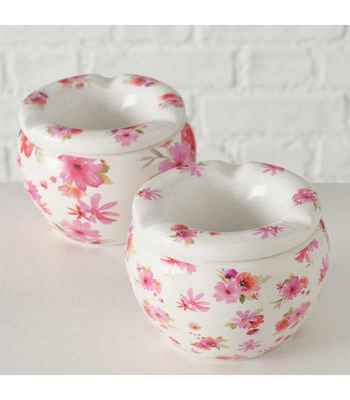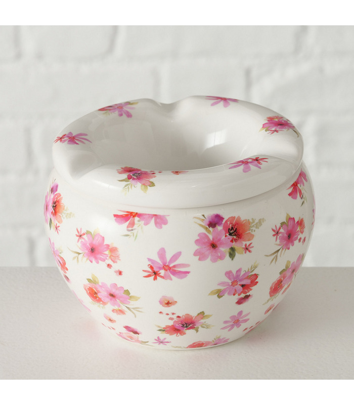 Outdoor ashtray Rosella, 2 ass., H 8,00 cm, Dolomite, Glazed, Printed, Round dolomite colour-mix