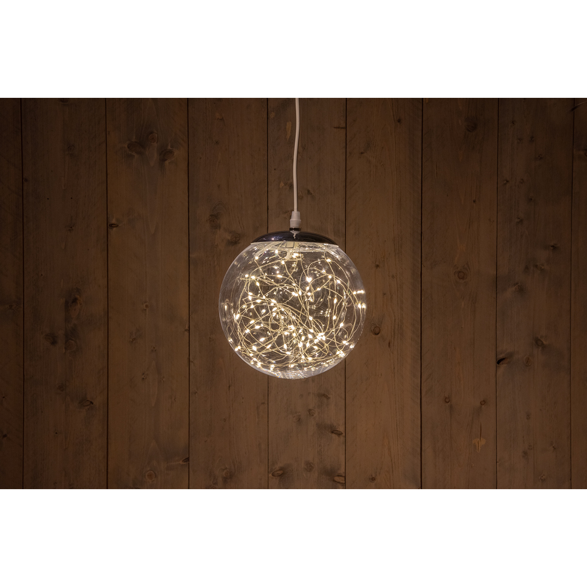 OUTDOOR BALL CLEAR 18CM/80LED WARM WHITE / 5M BLACK LEAD CABLE / ON / 8/16H TIMER / OFF / IP44 TRANSFORMER