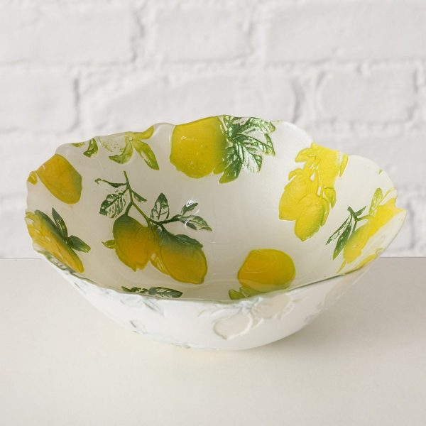 Bowl Calabria, Green, White, Yellow, Round, H 5 cm, D 15 cm glass laquered colour-mix