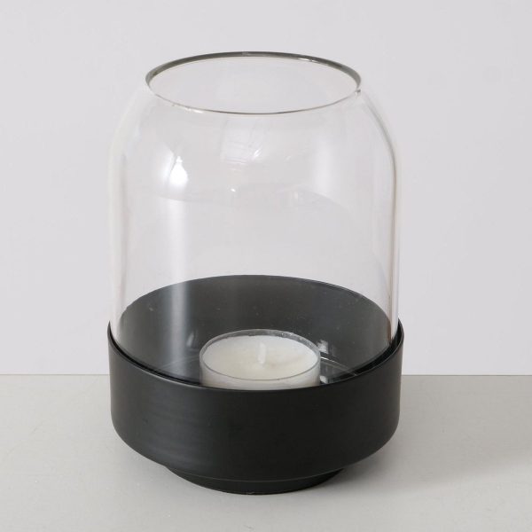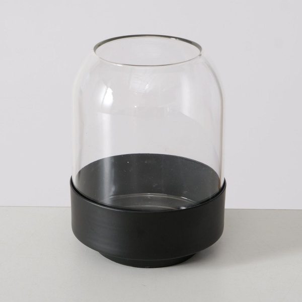 Vase Malena, H 12,5 cm, Iron powder coated, Clear glass, Mat, Single-colour mixed materials colour-mix