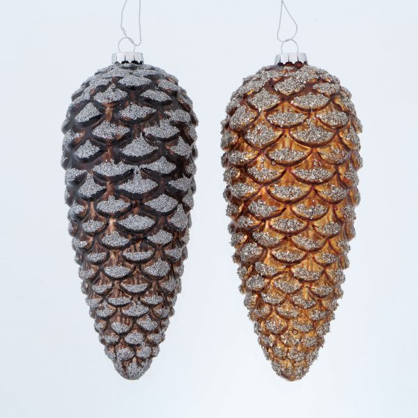 Decorative pendant Golata, 2 ass., Pinecone, L 20 cm, H 20 cm, D 9 cm glass laquered brown