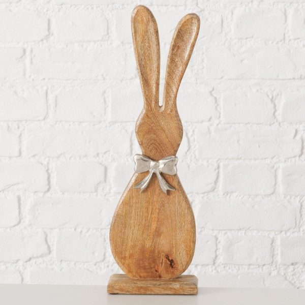 Figurine Helmy, Rabbit, H 41,00 cm, Mango (Mangifera indica L.), Aluminium, Natural, Silver