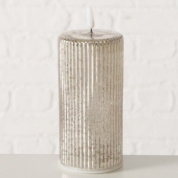 LED candle Loula, Pillar, H 17 cm, D 7 cm, Timer mixed materials antique silver