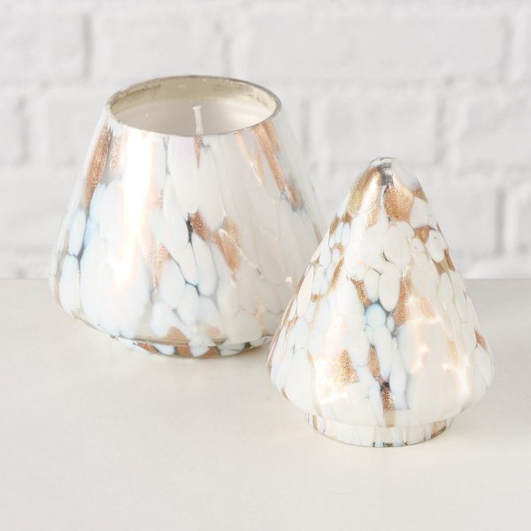 Candle pot Dotti , Christmas tree, H 14 cm, D 9,5 cm, Glass lacquered, Paraffin mixed materials colour-mix