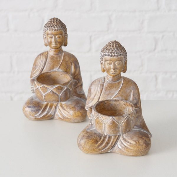 Tealight holder Legolas, 2 ass., Buddha, H 14,1 cm, W 9,2 cm, Polyresin polyresin brown