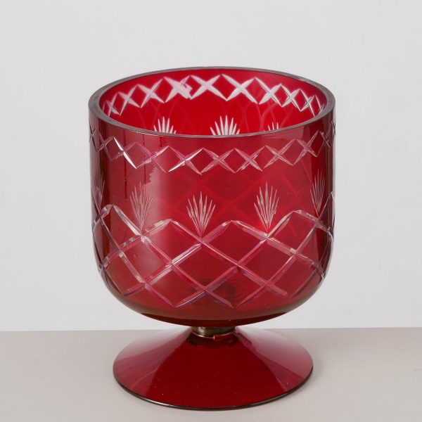 Windlight Juliana, Round, H 11,5 cm, Glass lacquered, Single-colour glass laquered red