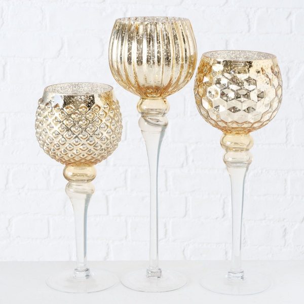 Windlight Manou, 3 p., Set 3, H 30-40 cm, Glass laquered, Gold glass laquered gold