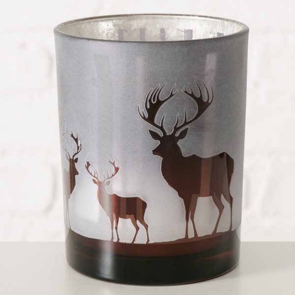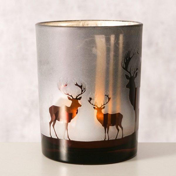 Windlight Sliro, Round, H 8 cm, Glass lacquered, Multi-coloured, Motif glass laquered dark grey