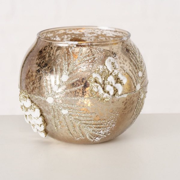 Windlight Skove, 2 p., 3 ass., Set 2, H 8-10 cm, Glass laquered, Floral, Gold, Light green glass laquered colour-mix