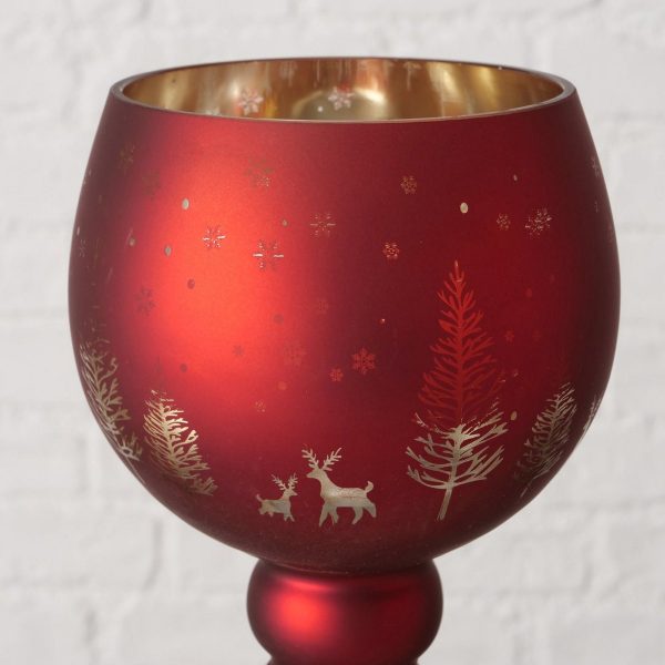 Windlight Winty, Round, H 8 cm, Glass lacquered, Multi-coloured, Motif glass laquered red