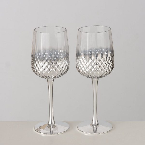 Wine glass Crystal, 2 p., H 22 cm, Clear glass, Metallic, Shiny, Single-colour glass clear colour-mix