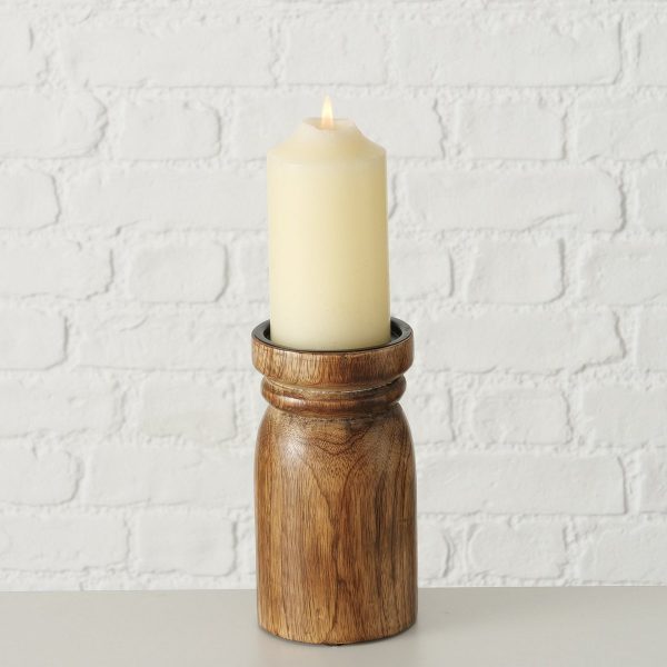 Candle holder Ilopa, Round, H 18 cm, Mango (Mangifera indica), Dark brown mango darkbrown