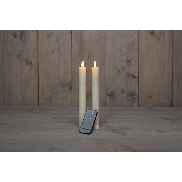 B.O. 2PCS IVORY RUSTIC WAX TAPER CANDLE 23CM MOVING FLAME REMOTE CONTROLLED 2XAA / COLOURBOX