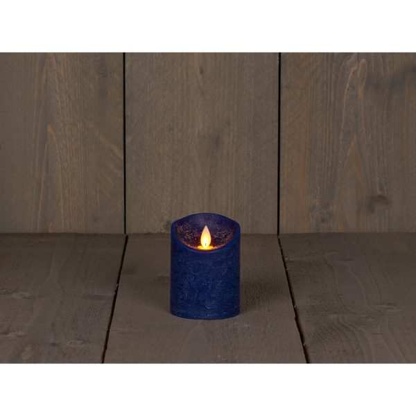 B.O.T. RUSTIC WAX CANDLE DENIM BLUE MOVING FLAME 7,5X10CM 3 X AAA WITH 6/18H TIMER / GIFTBOX