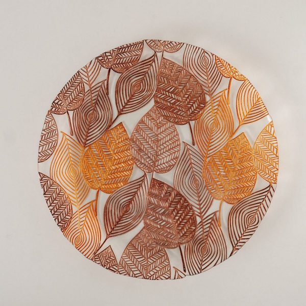 Plate Levil, D 33 cm, Glass lacquered, Multi-coloured, Motif, Brown, Orange glass laquered colour-mix