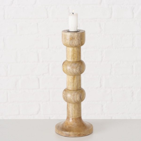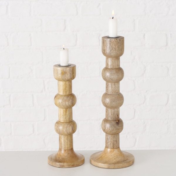 Candle holder Neley, 2 p., Set 2, Round, H 20-28 cm, L 10-12 cm, Mango (Mangifera indica) mango natural