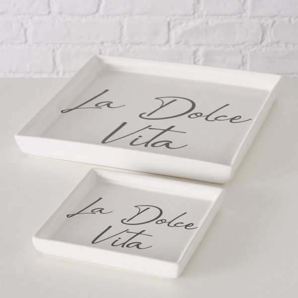 Plate Dolce Vita, 2 p., Set 2, Dishwasher safe, Stoneware, Multi-coloured, Saying/Text, Black, White stoneware colour-mi