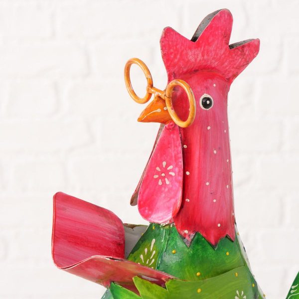 Shelf sitter Bruni, Cock, H 45,00 cm, Iron, Green, Red