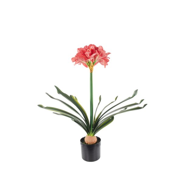 AMARYLLIS ORANGE IN BLACK FLOWER POT H 67 CM