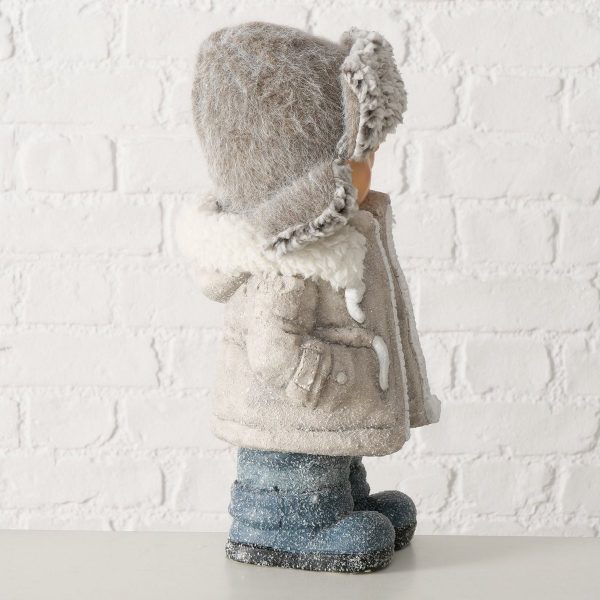 Figurine Enni, Boy, H 40 cm, Magnesia, Polyester, Beige, Grey, White mixed materials colour-mix