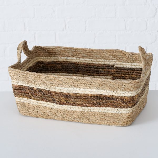 Basket Kavio, 3 p., Set 3, Square, H 14,00-17,00 cm, Corn hull, Light brown, Natural, White corn hull colour-mix