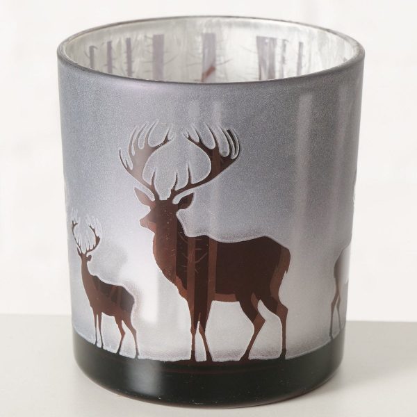 Windlight Sliro, Round, H 8 cm, Glass lacquered, Multi-coloured, Motif glass laquered dark grey