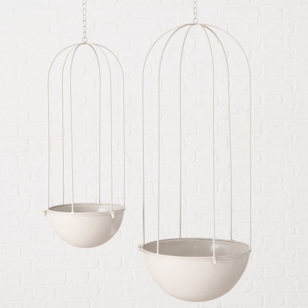 Plant pot holder Hillary Set/2 d20x56hcm +64cm chain, d30x80cm +60cm chain Iron powder coated, Mat, bei