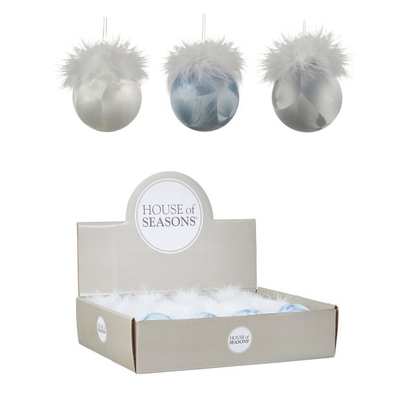Bauble glass silver white blue 3 assorted display – d8cm
