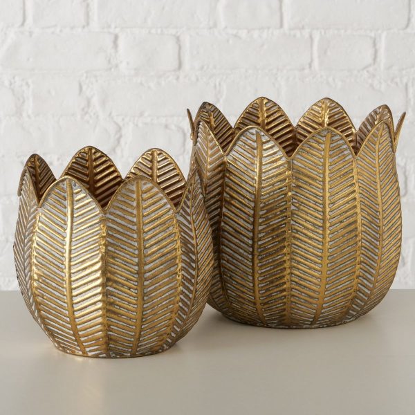 Planter Robinson, 2 p., Set 2, H 32,00-36,00 cm, Iron, Floral, Gold