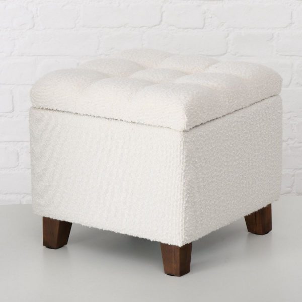 Stool Palur, H 35,00 cm, Monterey pine (Pinus radiata), MDF, Polyester, Single-colour, White