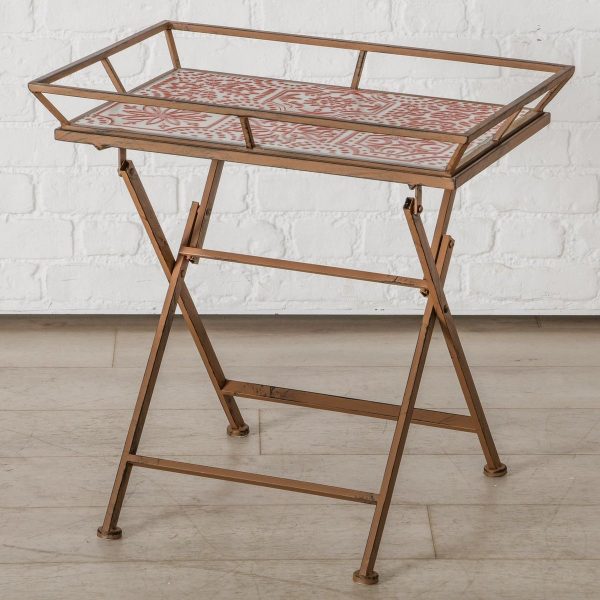 Tray table Rosso, W 45,00 cm, Iron powder coated, Brown, Red, White