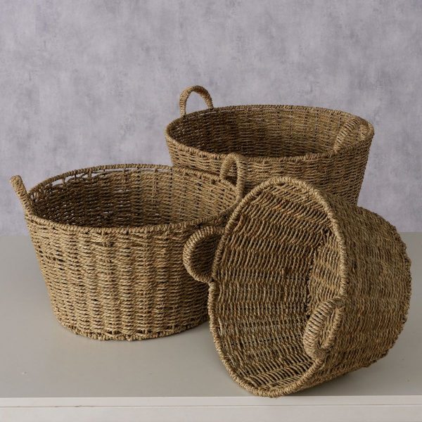 Basket Campania, 3 p., Set 3, Round, H 29,00-37,00 cm, Iron, Seagrass, Natural