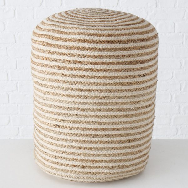 Stool Lurije, 2 ass., H 55,00 cm, Jute, Cotton, Multi-coloured, Striped, Beige, White mixed materials colour-mix